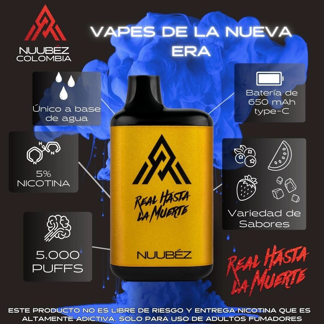 Vapeador desechable. Contiene 1 und de dispositivo desechable con batería recargable de 650mAh tipo C pre cargado hasta con 5000 puff. (12 ML de líquido con sales de nicotina) sabor: Blueberry Ice, nivel de nicotina: 5%. Puff = inhalaciones. Puede variar según el hábito de uso de cada consumidor. Producto exclusivo para mayores de edad contiene nicotina, sustancia adictiva.